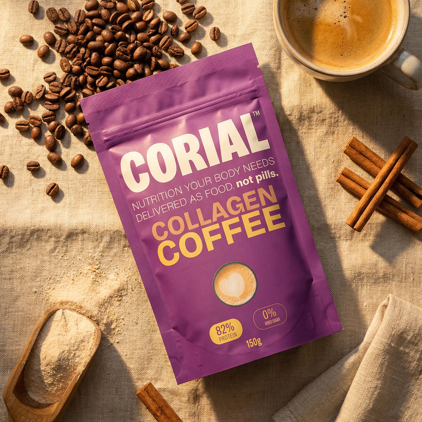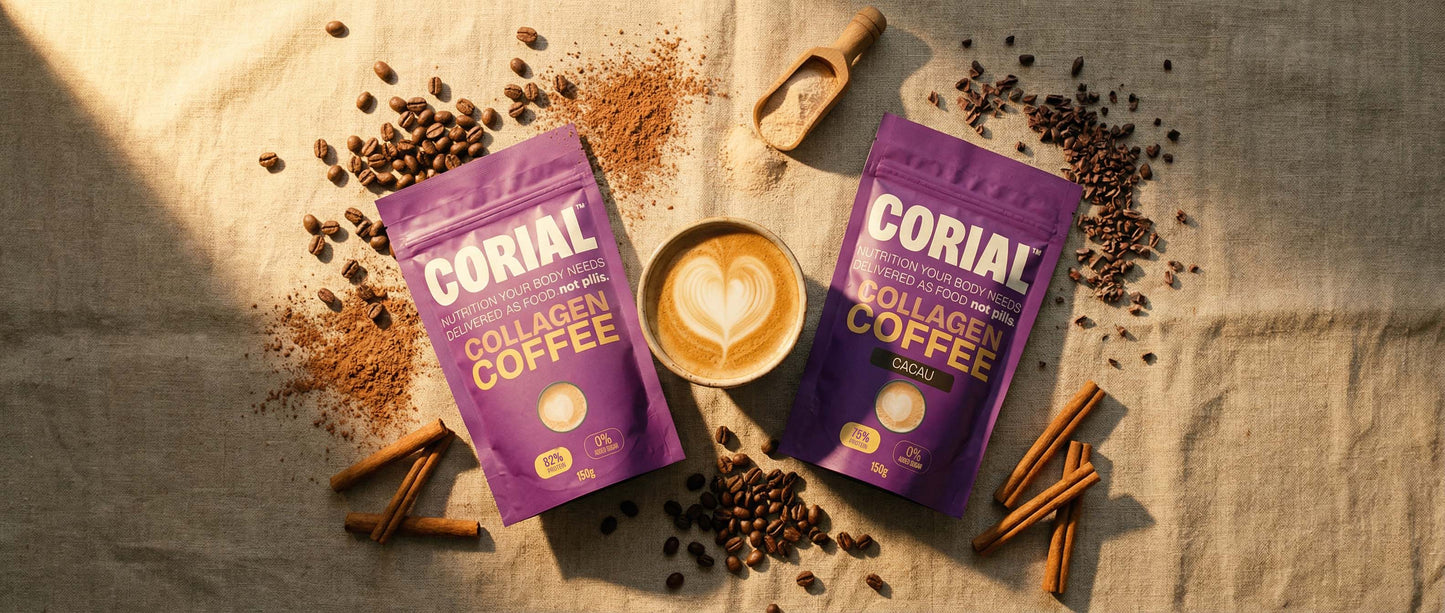 O teu café com colagénio, sem açúcar adicionado. Nutrição real em cada chávena.