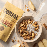Aveia, fibra de raiz de chicória, sementes de girassol, óleo de coco, proteína de trigo, maçã desidratada (3,9%), canela (0,5%), sal.