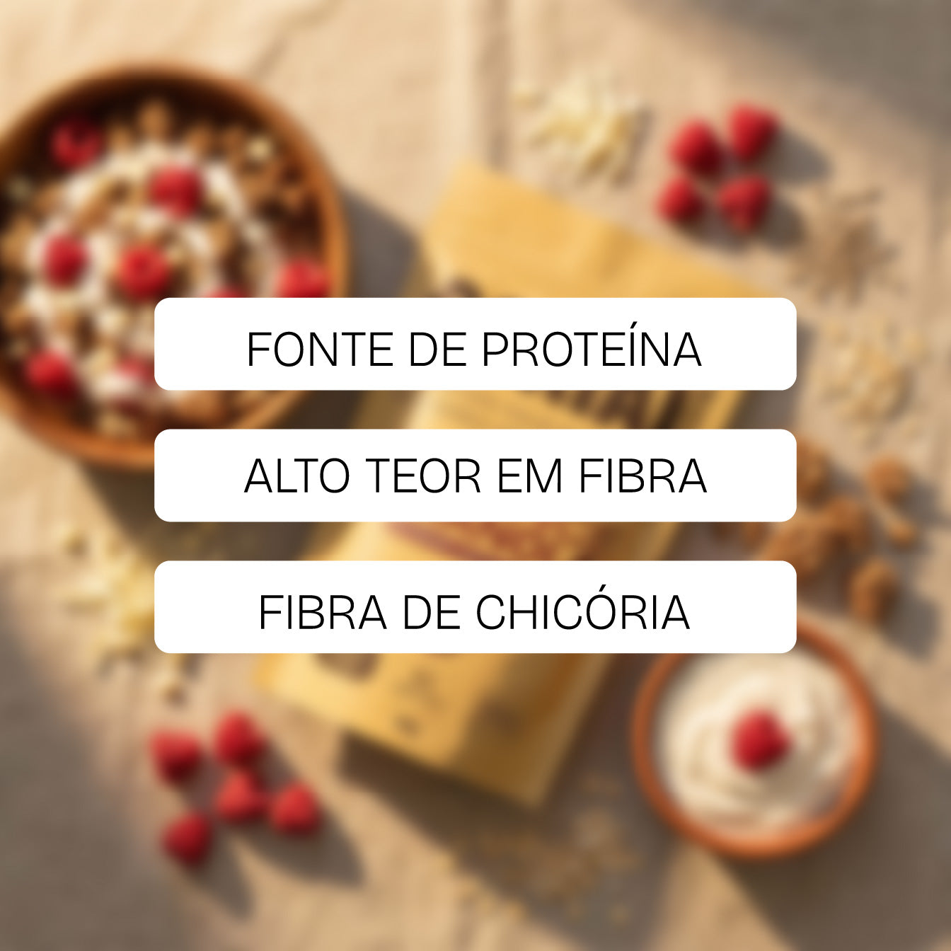 With chicory fibre (inulin), which contributes to normal bowel function*. Granola, oatmeal and snacks with high fibre content.