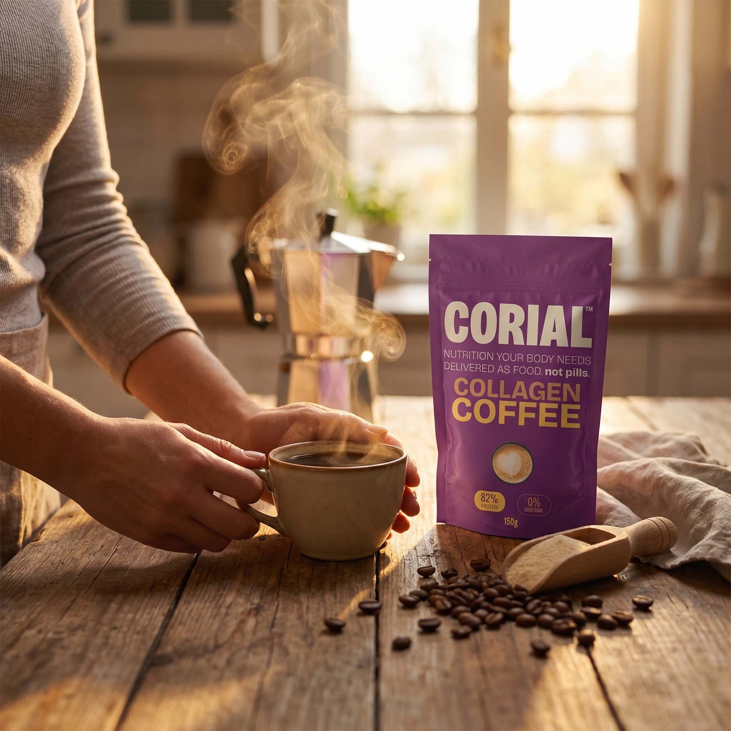 Sí. En lugar de píldoras o polvo sin sabor, obtienes colágeno en el café que ya tomarías. Filosofia CORIAL: Cero Píldoras.